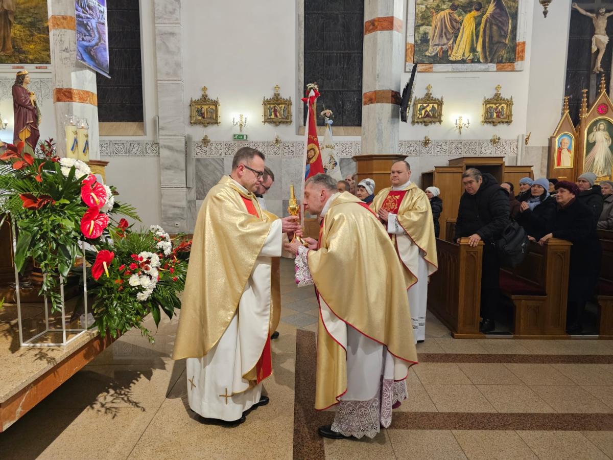Jako, że na imieniny dostaje się prezenty, tak też parafia w tym roku otrzymała wspaniały prezent – relikwie św. Barbary. Podczas wieczornej Eucharystii doczesne szczątki patronki górników uroczyście wprowadził ks. Marcin Kruszak i przekazał parafii na ręce ks. proboszcza Gerarda Małodobrego.